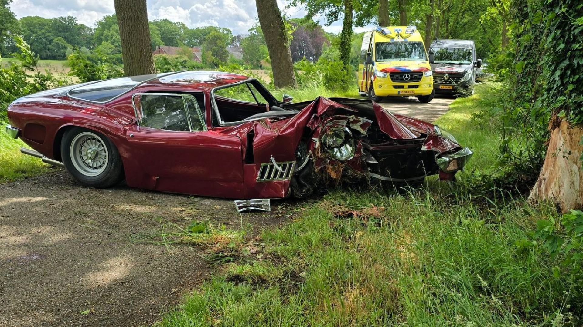 Oldtimer total loss na botsing tegen boom tijdens proefrit van monteur