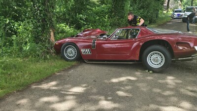 Peperdure Italiaanse sportwagen crasht tegen boom
