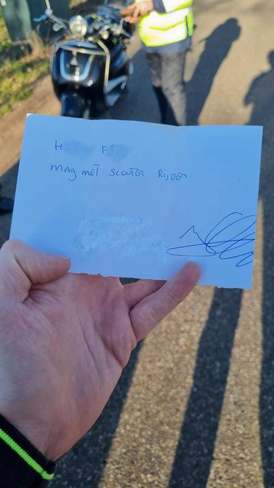 Scooterrijder overhandigt zelfgeschreven briefje bij vraag naar rijbewijs