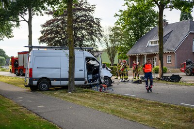 Man (26) overlijdt na botsing tegen boom met bestelbus