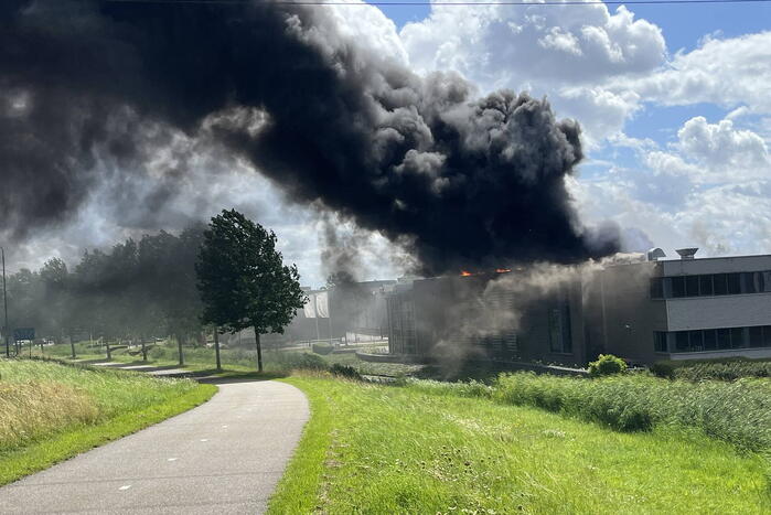 zondag 30 juli 2023, 15:13 uurBij een bedrijf in het Zuid-Hollandse Alblasserdam is zondag een brand uitgebroken. Op beelden is te zien dat de vlammen uit het pand aan de Van Hennaertweg slaan. Er komt veel zwarte rook vrij, waardoor de nabijliggende A15 is afgesloten.