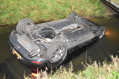 AMMERZODEN - Een automobilist is zaterdagavond met zijn auto op zijn kop in de sloot beland aan de Nieuwekade in Ammerzoden. De bestuurder is naar het ziekenhuis gebracht.