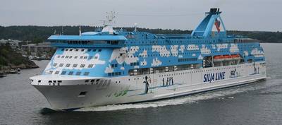 Cruiseschip voor asielzoekers afgemeerd in haven