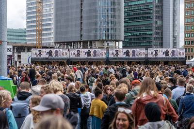 Superster Taylor Swift treedt donderdag, vrijdag en zaterdag op in de Johan Cruijff ArenA in Amsterdam, wat garant staat voor lange rijen. Momenteel nog niet voor het concert, maar wel al voor de verkoop van merchandise – wat al op woensdag begon. Verslaggever Charlotte Sun ging sfeer proeven bij de ‘Swifties’ in de lange rij.