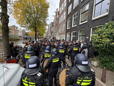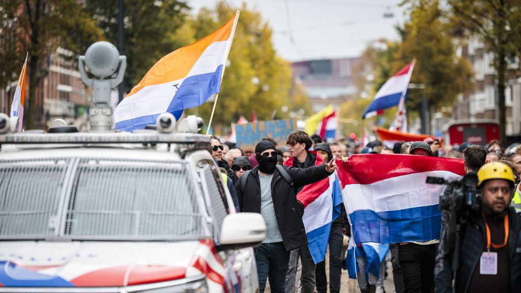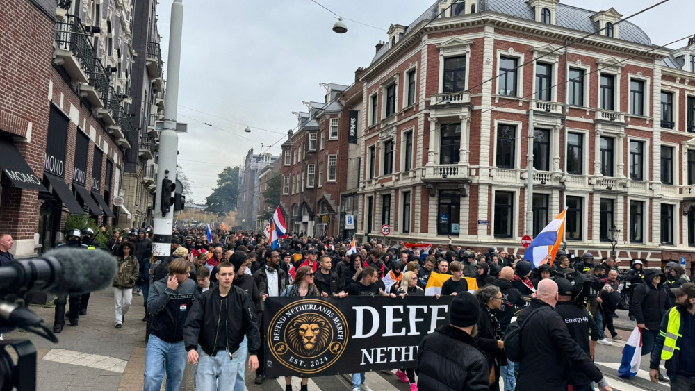 Duizend demonstranten lopen momenteel een grote mars door het centrum van Amsterdam. Er zijn meerdere aanhoudingen verricht. De Mobiele Eenheid (ME) loopt mee om de groep te begeleiden. Veel politieagenten die uitgerust zijn met schilden en wapenstokken. De demonstranten roepen ‘wij zijn Nederland’ en steken rookbommen af.