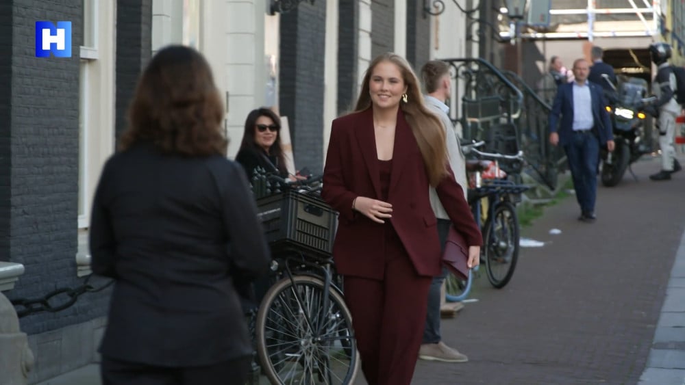 Amalia is op uitnodiging van burgemeester Femke Halsema afgereisd naar Amsterdam. De 22-jarige prinses, gehuld in een bordeauxrood pak, heeft een druk schema voor de boeg, maar start haar dag met een brunch met Halsema.