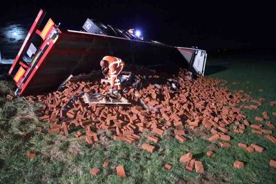 donderdag 17 februari 2022, 20:51 uurANGEREN – Een vrachtwagen met bakstenen is donderdagavond gekanteld in de buurt van de steenfabriek in Angeren. De lading kwam terecht in een weiland waar ook koeien liepen.