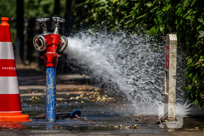 Straat verandert in rivier door leidingbreuk