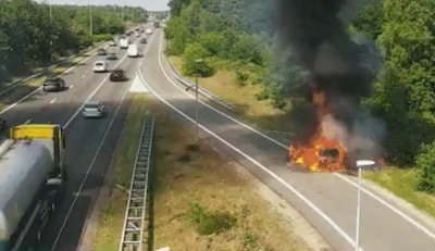 Auto brandt volledig uit op snelweg, oorzaak onbekend