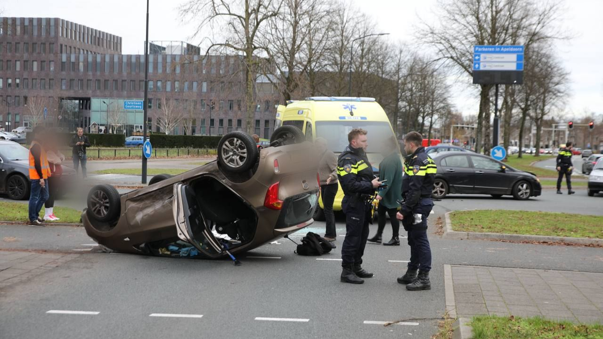 Auto belandt op de kop na botsing in Apeldoorn: bestuurder mee naar het ziekenhuis