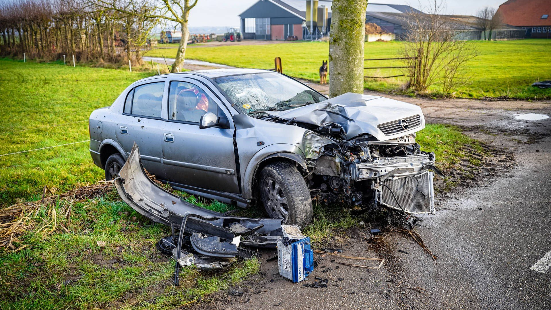 Een auto is dinsdagochtend tegen een boom gecrasht op de Dijkgraaf de Leeuwweg in Appeltern. De automobilist verloor de macht over het stuur en belandde in de berm.