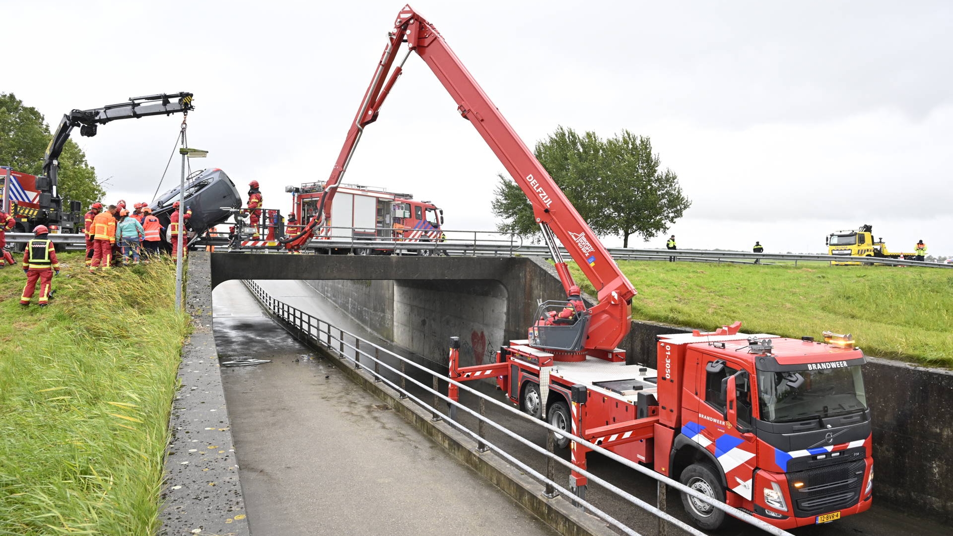 Een ernstig ongeval op de N33 tussen Appingedam en Delfzijl zaterdagochtend. Een auto sloeg over de kop over de vangrail en dreigde van het viaduct te kiepen. De brandweer kon de bestuurder redden.