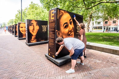 De beeltenis van Sanne Hertgers, in 2023 vermoord door haar ex-man, is beklad. Vermoedelijk in de nacht van donderdag op vrijdag. Het bord maakt deel uit van de reizende expositie Femicide in Arnhem. Haar vader Wim Hertgers (60) is woedend en verdrietig.
