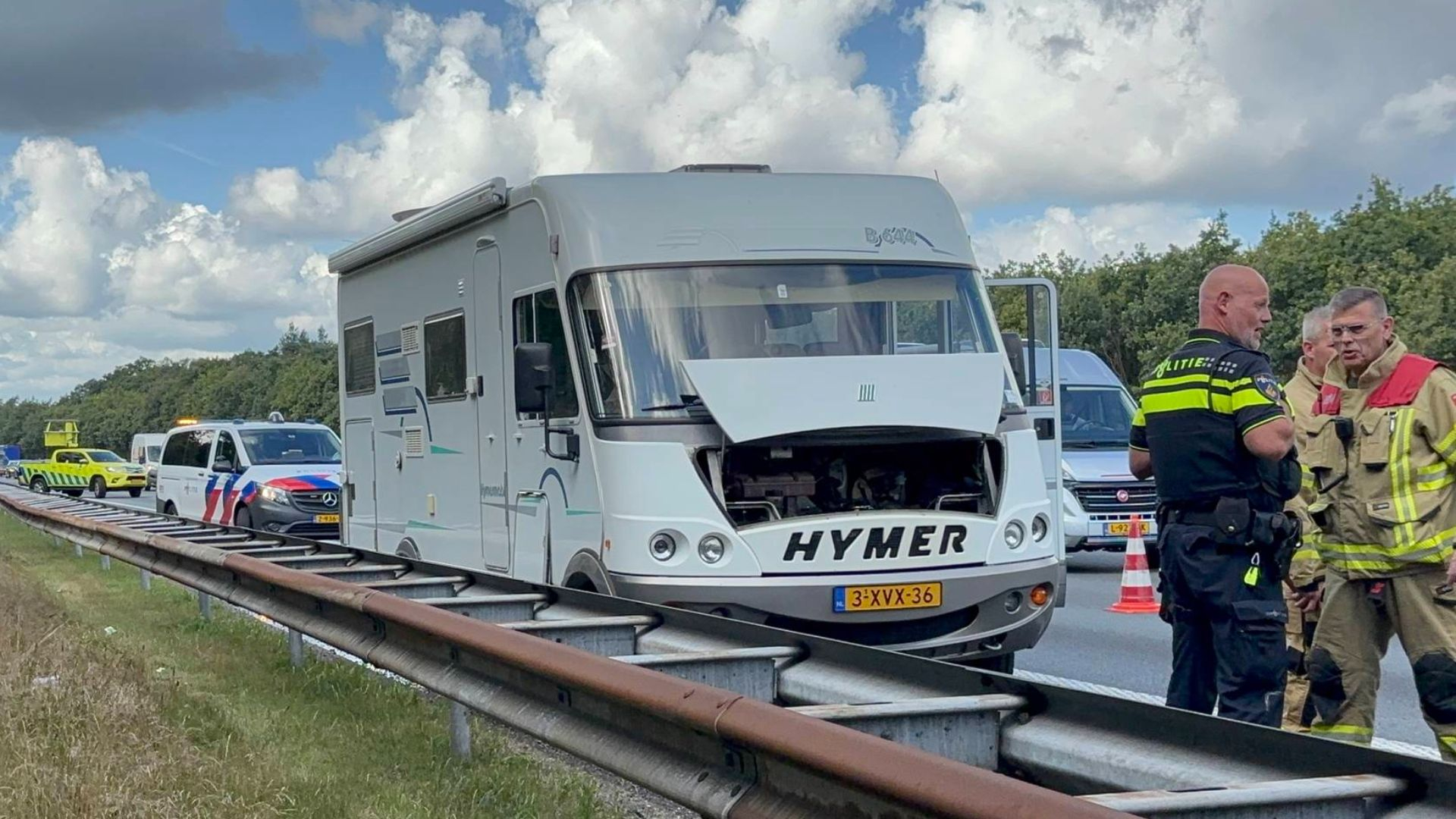 Gezin met twee kinderen strandt op A12 met camper, file richting Arnhem