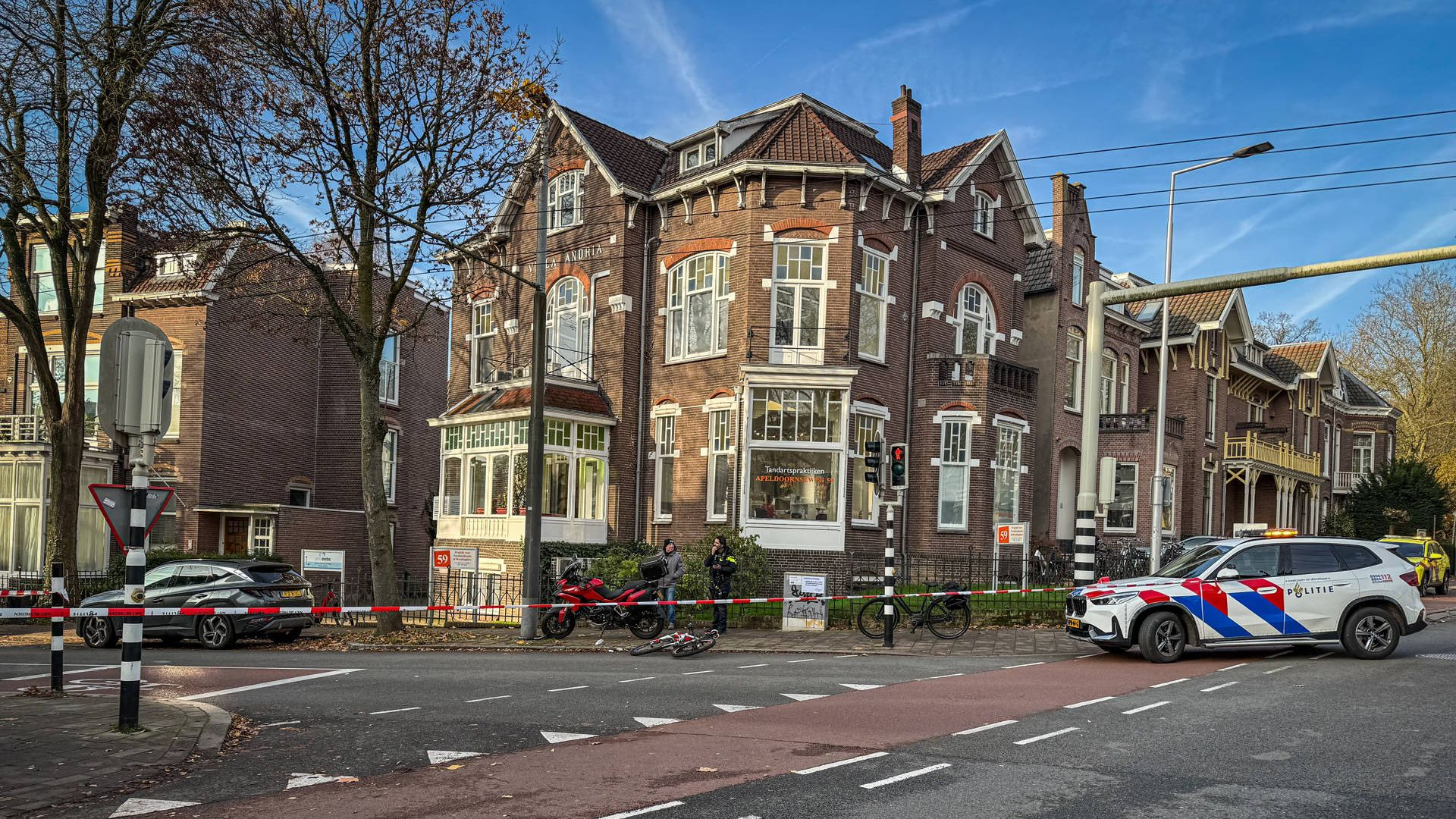 ARNHEM – Op de kruising van de Apeldoornseweg en de Paul Krugerstraat in Arnhem heeft donderdag 4 december rond 10.30 uur een ernstig verkeersongeval plaatsgevonden tussen een auto en een fietser. Daarbij is de fietser overleden aan zijn verwondingen. Meerdere ambulances en een traumahelikopter werden opgeroepen.