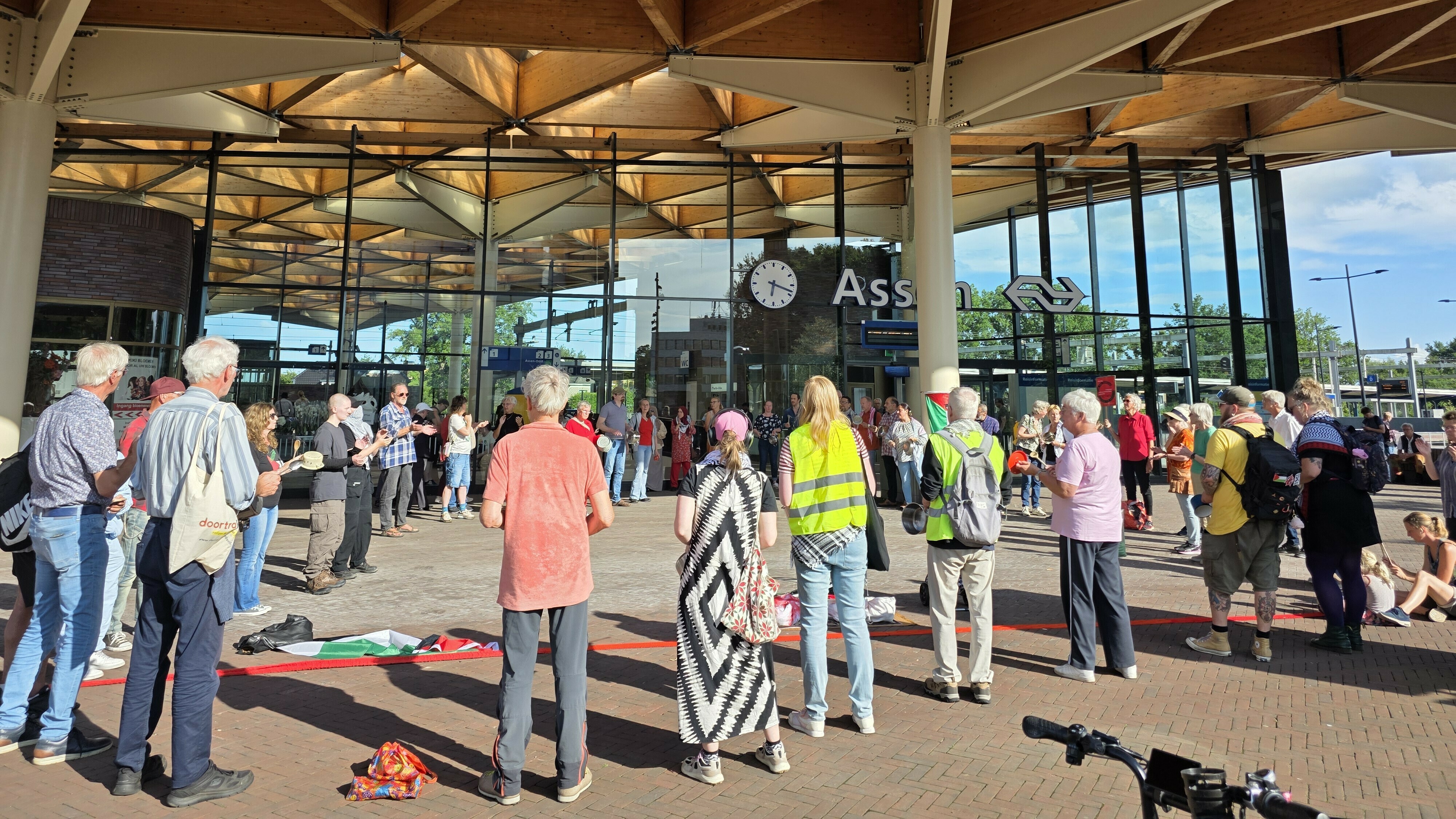 Op het treinstation van Assen hebben demonstranten vanavond een lawaaiprotest gehouden tegen de humanitaire crisis en hongersnood in Gaza.
