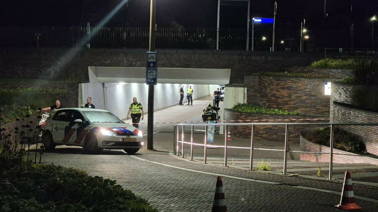 De motorrijder werd in de tunnel geraakt door de politie en viel. De motor is mogelijk gestolen.