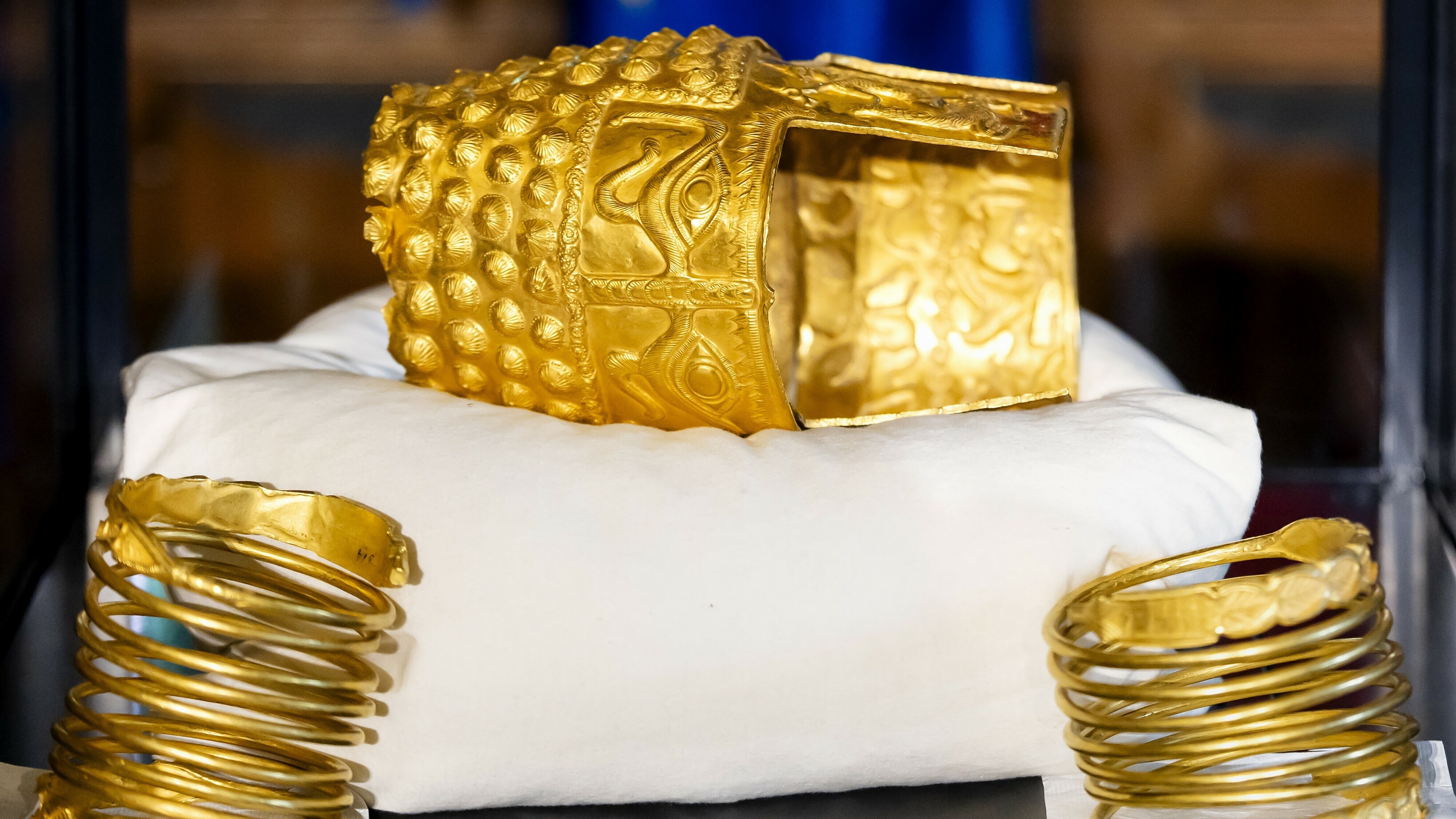 De rechtbank in Assen buigt zich vanaf vandaag over het gestolen Roemeense goud dat werd buitgemaakt uit het Drents Museum. Hoewel de gouden helm en twee van de drie armbanden sinds kort terecht zijn dankzij een deal met twee van de verdachten, staan drie mannen vandaag terecht: Douglas W., Bernhard Z. en Jan B.