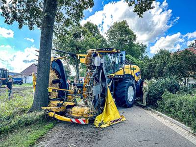 Hakselaar moet uitwijken voor tegenligger: bestuurder ernstig gewond aan hoofd na botsing tegen boom