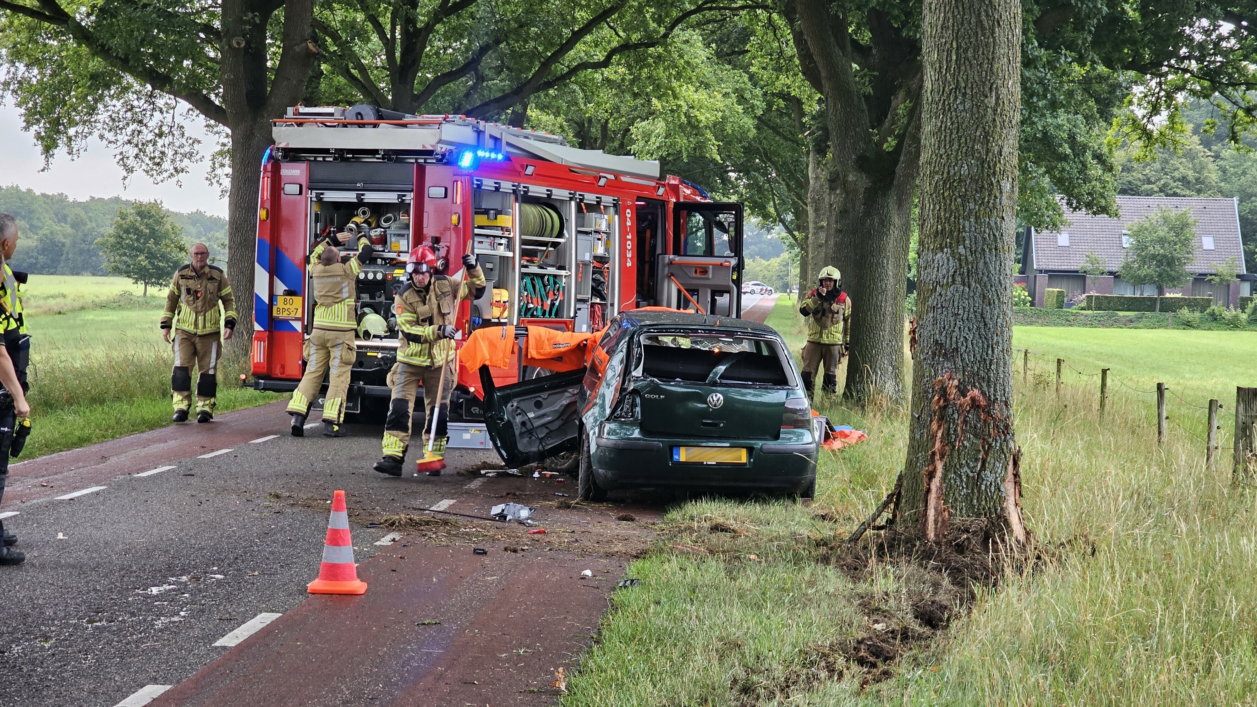 Auto botst hard tegen boom in Balkbrug, brandweer bevrijdt gewonde bestuurder
