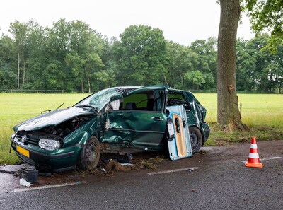 Een bestuurder is woensdagochtend tegen een boom gebotst en bekneld geraakt in de auto. Dat gebeurde buiten Balkbrug. Bij de botsing raakte de bestuurder gewond. De schade aan de auto is enorm.