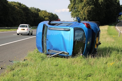 Auto over de kop geslagen bij aanrijding op A30 bij Barneveld