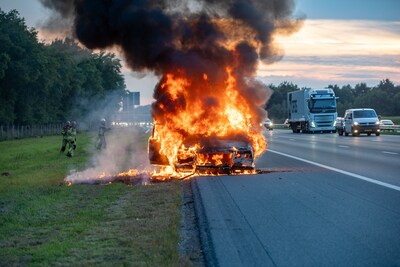 Oude auto op weg naar bruiloft door brand verwoest op snelweg A1