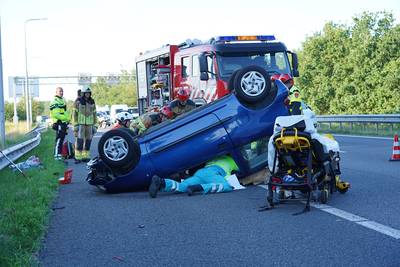 BAVEL - Een vrouw is donderdagochtend met haar auto over de kop geslagen op de A27 bij Bavel. Dat gebeurde bij een botsing met een vrachtwagen bij het knooppunt Sint Annabosch, waar de wagen ondersteboven tot stilstand kwam. Brandweerlieden hebben de beknelde automobiliste uit het voertuig bevrijd.