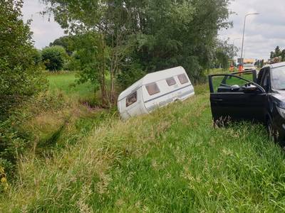 Automobilist wordt ingehaald door eigen caravan, caravan belandt in de sloot