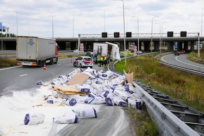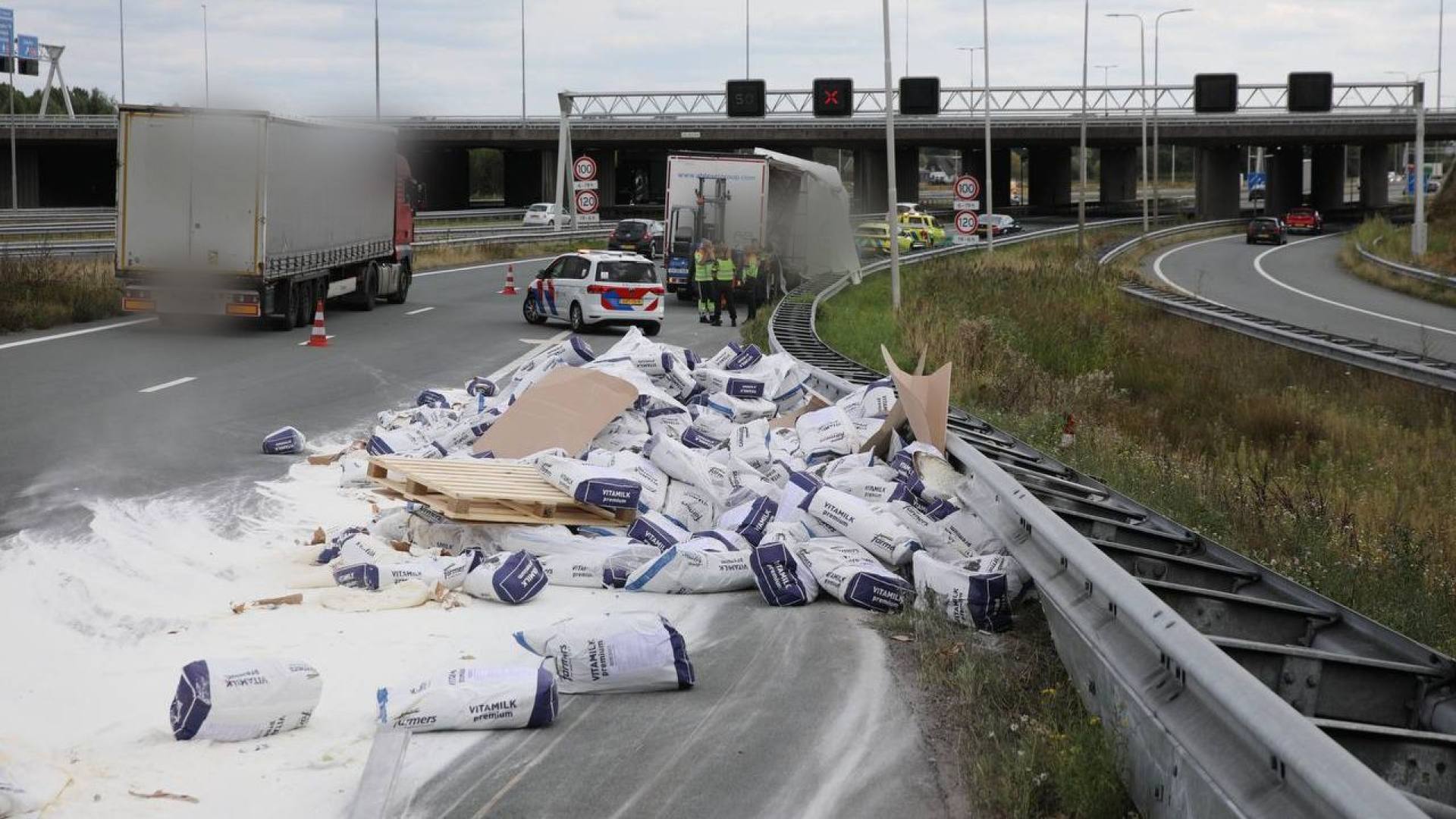 KIJK | Ravage op snelweg: vrachtwagen verliest lading melkpoeder