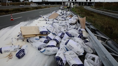 Vrachtwagen verliest pakken melkpoeder op snelweg