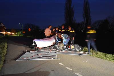 Man op scooter rijdt op afgesloten dijk dwars door bouwhekken en raakt gewond