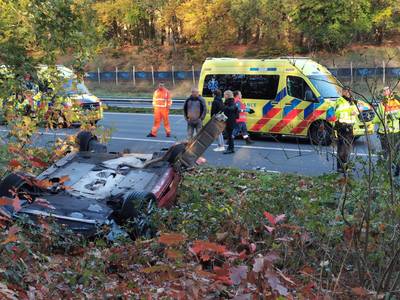 Twee gewonden nadat auto over de kop vliegt op snelweg