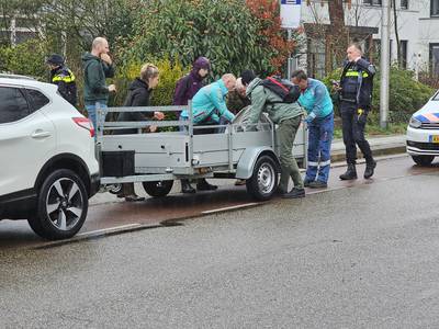 Fietser komt door botsing ín aanhanger terecht en raakt gewond