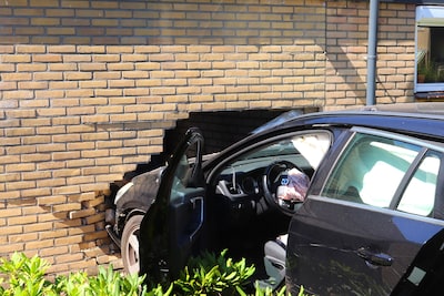 Auto ramt muur garage, bestuurder gewond