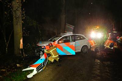 Agenten naar ziekenhuis nadat politieauto tegen boom crasht