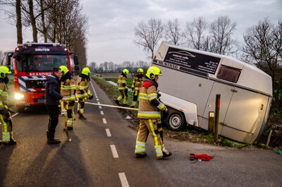 Paardentrailer belandt met paard in de sloot