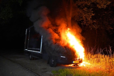 Geparkeerde bakwagen staat in de fik in buitengebied Berlicum