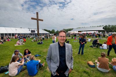En toen hield het niet meer op met regenen in Biddinghuizen. Het terrein waar de christelijke conferentie de Opwekking werd gehouden tijdens het Pinksterweekend werd overspoeld door langdurige buien. Maar voor directeur Ruben Flach mocht dat de pret niet drukken.