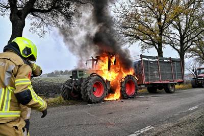 Boer is ontdaan nadat tractor helemaal uitbrandt tijdens rit