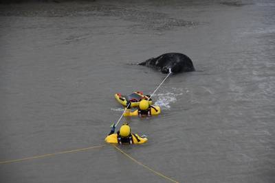 Koe verdronken in Waal bij Brakel, reddingsactie van brandweer komt helaas te laat
