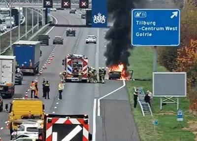 Op de A58 is vrijdagmiddag een auto in brand gevlogen. Bij de afslag Tilburg-Centrum West zijn daarom twee rijstroken dicht om de brand te blussen. Het verkeer richting Breda moet rekening houden met een uur vertraging, meldt Rijkswaterstaat.