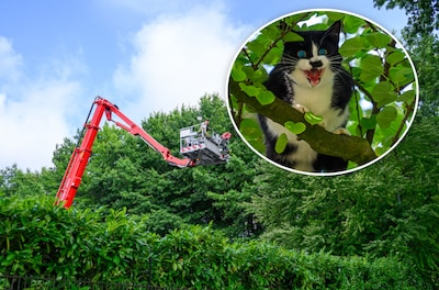 Kat zit vast in boom: brandweer haalt alles uit de kast