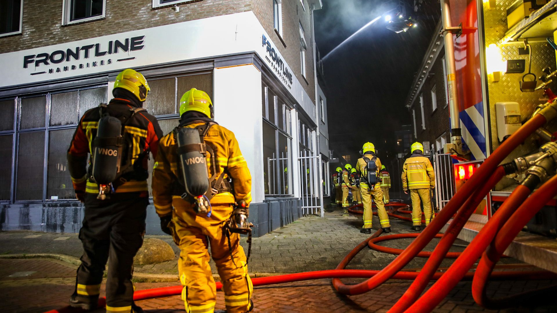 Brand in fietsenwinkel, bewoners moeten huis uit