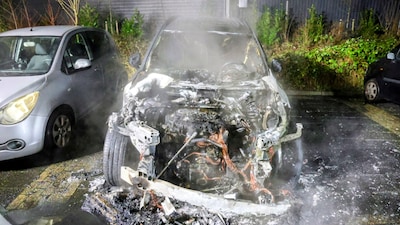 Auto brandt volledig uit op parkeerplaats, naastgelegen voertuig beschadigd