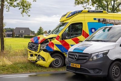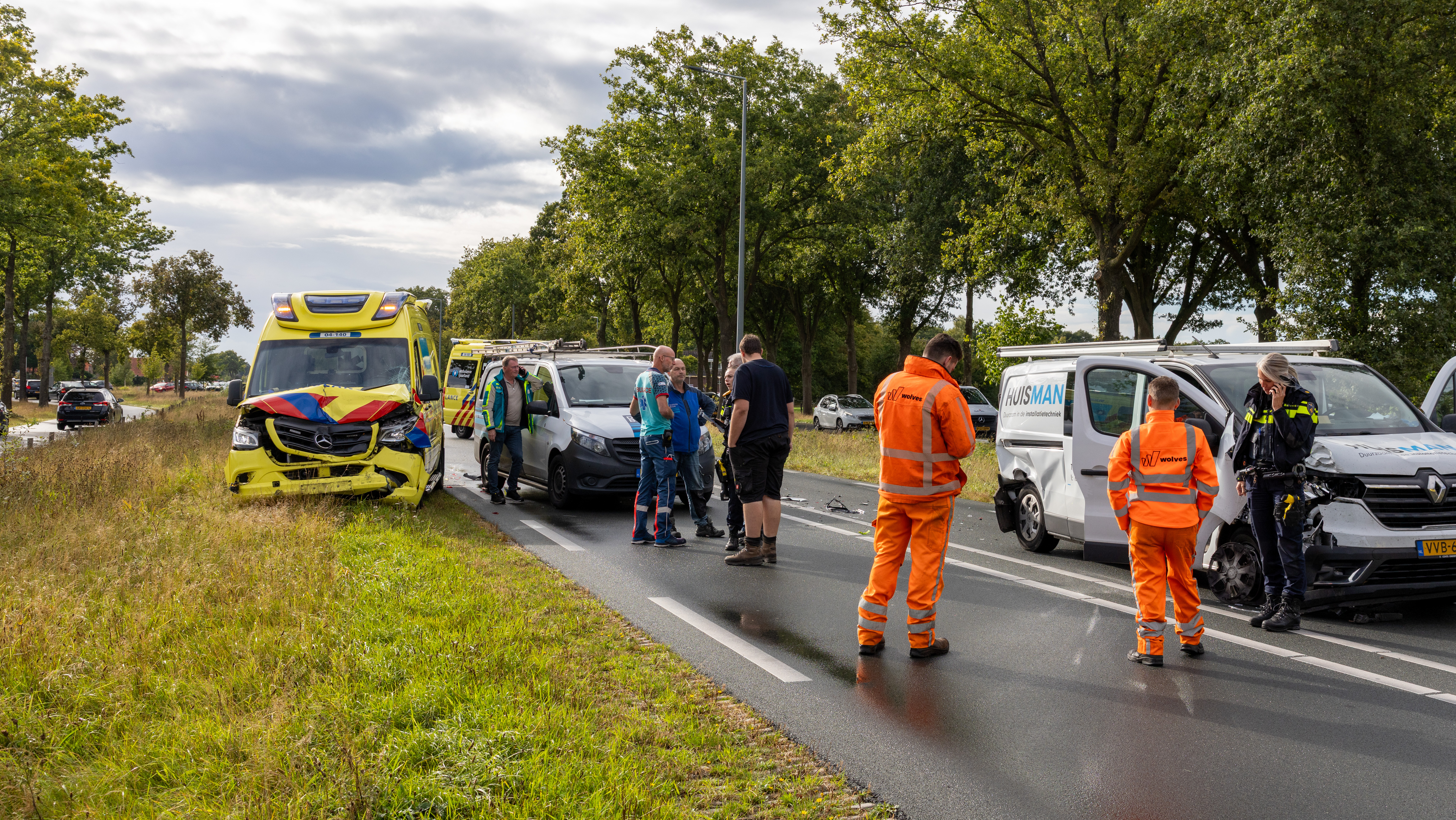 Een ambulance is donderdagmiddag tegen een bedrijfsbusje gebotst bij Dalfsen. Door de impact raakte ook een tweede busje betrokken bij het ongeluk. De bijrijder van het eerste busje moest naar het ziekenhuis.