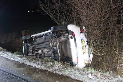 DE GLIND - Ook in Gelderland is het door sneeuw en bevriezing op plaatsen spekglad. Aan de Helweg in de Glind (Barneveld) is dinsdagavond laat een personenauto op zijn zijkant in een greppel beland. Het ongeval gebeurde omstreeks 22.45 uur. Op de Helweg was het op dat moment door ijsvorming spekglad.
