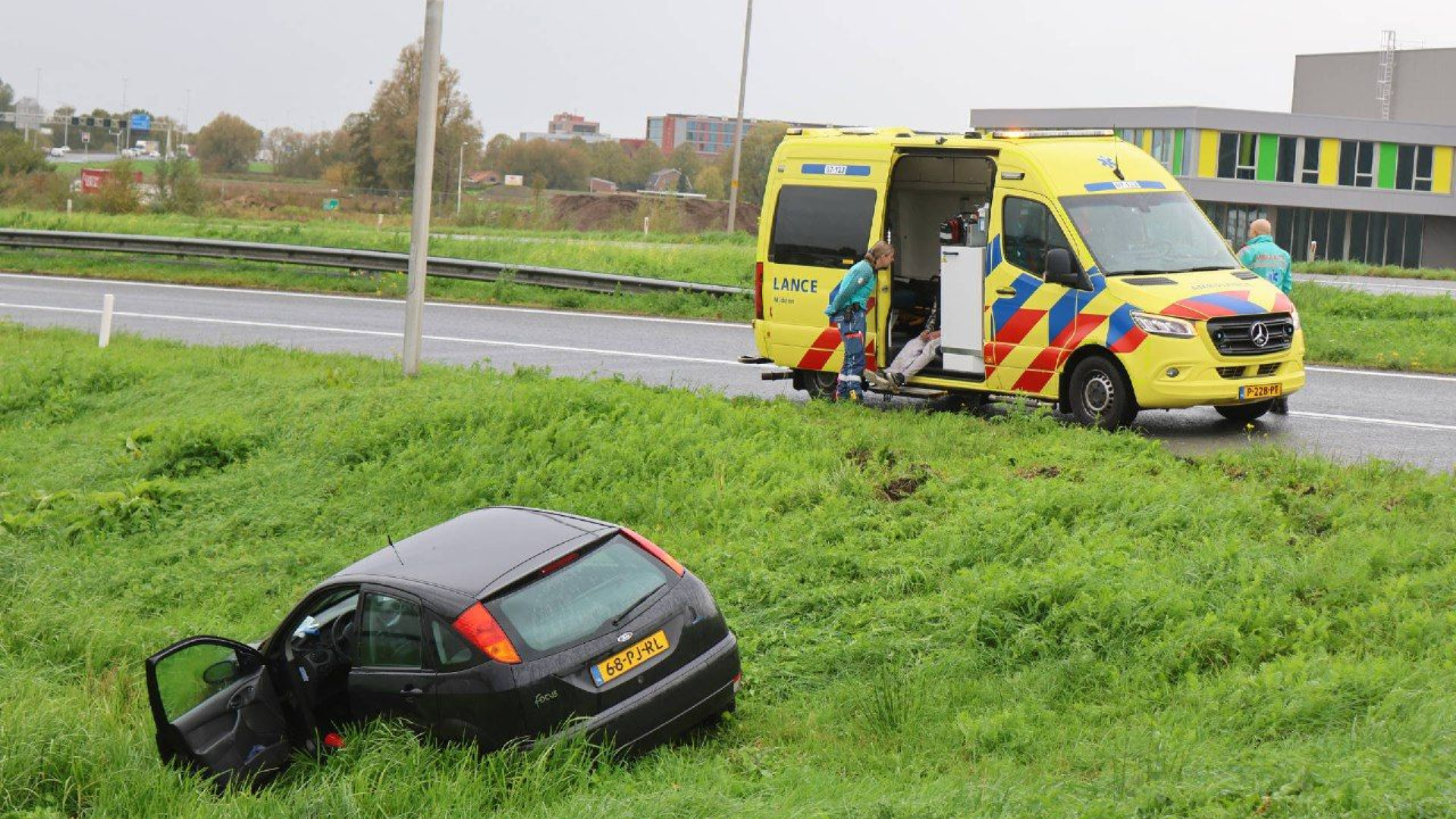 Auto belandt naast de snelweg, hulpdiensten snel ter plaatste