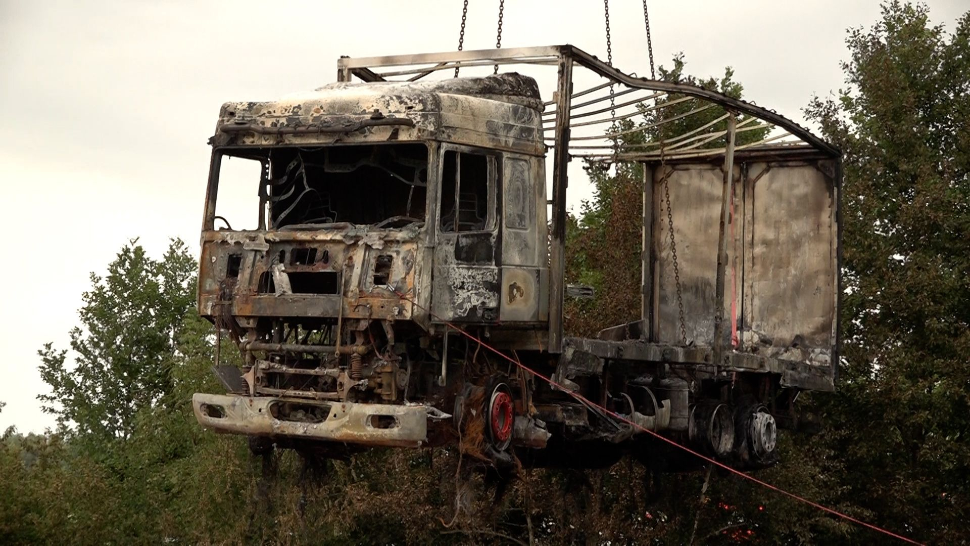 Politie heeft handen vol aan afvoeren uitgebrande drugsvrachtwagen