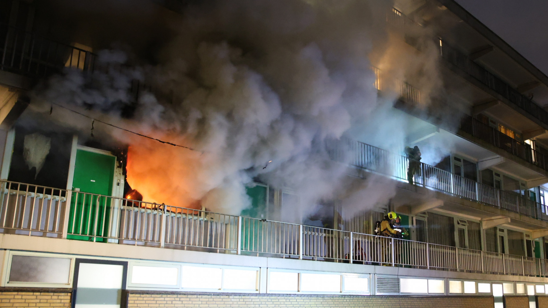 In een appartement aan de Bachsingel in Delft is zaterdagavond brand uitgebroken. Op foto's is te zien dat de vlammen uit de woning slaan.